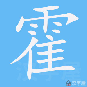 霍,甲骨文=(雨)+(三只鸟,鸟群),造字本义:鸟群在雨中奋力疾飞发出的“呼呼”声。金文将甲骨文中的三只鸟减为两只鸟。篆文承续金文字形。隶书又将篆文的两只“隹”减为一只“隹”。众鸟共栖为“集”;众鸟同鸣为“噪”;众鸟齐飞为“霍”。