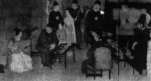 【作品赏析】: 韩熙载,南唐大臣,官至兵部侍郎、中书侍郎等职。 他原是北方豪族,初有恢复中原的大志,但未得重用。后因李后主多猜疑北方人,便更加放意怀酒、沉缅声色,把抑郁化作纵欲。 李后主曾想用他为相,但他看出“国事日非”,终不肯出。此图便是李后主派画家顾闳中夜至其家,窃他夜宴情景,而后根据记忆画成的。 此卷分五段,即“听乐”“观舞”“歇息”“清吹”和“散宴”。各段以屏风等相间隔,前后连续又各自独立,表现在时间序列中展开的事件。主要形象都是当时与韩熙载要好的真实人物,他们在各段间反复出现,观者一望便可辨认出。韩熙载的性格与心理刻画极为深入;超然自适、气度轩然,却又郁郁沉闷。这不仅显示了画家惊人的观察力,也显示了他对主人公命运与思想矛盾的深刻理解。 第一段“听乐”,画韩熙载与众友静听教坊副使李家明的妹妹按胡琴,每一个人物的神情都突出一个“听”字。韩熙载的情绪是深沉的,琴声似乎使他想起了什么;穿红衣的状元郎粲不仅听入了神,还直盯著弹琴者,适足与他的年龄身份相契合。其它每个人,有的抱手、有的侧耳、有的回顾、有的垂立,俱都凝神于琴曲中。 画家的写实技巧和再现能力确实达到了相当的高度。 全图工整精细,设色绚丽清雅而又沉著。 各种人物、各式服装的线描,有粗细、轻重、疾缓不同的变化,流畅但不飘浮,转折舒服、风格雅正,是古代人物画的杰出代表之一。。 【作者介绍】: 顾闳中(公元十世纪),江南人,南唐画院待诏,善画人物。  五代 顾闳中 卷 绢本设色 纵28.7厘米 横335.5厘米 藏故宫博物院 |