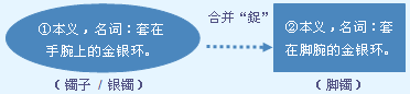 合并字“鋜”由金(金银)、足(脚腕)会义,表示套在脚腕上的金银饰环。