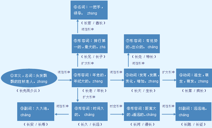 释义 | ![]() (長) ❶ 年龄相对较大的;辈分高的: ~辈|师~|~幼有序|他~我两岁。 幼 yòu ~儿|~苗|年~无知|~小的心灵需要呵护。 少 shào 男女老~|青春年~。 ❷ 增长: 助~|有~进|吃一堑,~一智|听他谈话真是~了见识。 消 xiāo 此~彼长|烟~云散|身体一天天~瘦。 灭 miè ~绝|自生自~|长他人志气,~自己威风。 ❶ 空间距离远的: ~途运输|很~一段路|放~线钓大鱼|这辆车的车身特别~。 短 duǎn ~兵相接|~跑道滑冰|他是个习武之人,经常是一身~打扮。 ❷ 时间长久的: ~寿|~年累月|演出结束后,观众报以~时间的掌声。 短 duǎn ~~一个星期|长痛不如~痛|~时间内这种状况不会改变。 ❸ 某一方面突出的优点或特长: ~处|靠自己的一技之~在外面闯生活。 短 duǎn ~处|揭人不揭~|善于取长补~|扬长避~。 长度大(指空间、时间),跟“短”相反。能重叠。 a.作带补谓语。 这条路~得很,你最好不要走路去|这条灌溉渠很~|时间太~|那通道~~的,宽宽的。 b.作“觉得”“感到”“喜欢”等动词的宾语。 这条路你走惯了就不觉得~|这条路并不短,但他们边聊边走并不感到~。 c.作定语。 她仍然留着~头发,你一看便能认出来|~~的柳丝垂在湖面上|领导给了我很~的时间来完成这项任务。 d.作补语。 这件衣服做~了,很不合身|这件事你得抓紧办,时间拖~了,麻烦更多|你把线放得~~的,就能钓到大鱼么? e.作状语,或构成介宾词组作状语。 姑娘的两条辫子~~地拖在背上|细水~流|大家要从~计议。 ❶长度,两点之间的距离。 a.作主语。 ~200米,宽50米|~不得超过3000米。 b.作宾语。 这座桥有200米~|宽乘~,长方形的面积就算出来了|已知长方形的面积为1500平方米,宽为30米,请你求长方形的~。 ❷特长,长处。 a.作宾语。 每个人都应该有一技之~|这个人一无所~|大家都是经过专业培训的,各有所~,应该把你们的才能发挥出来|我们要取~补短,相互学习。 b.作主语。 你的一技之~应该发挥出来。 【近】 〈形〉远 久 【反】 〈形〉近 短 【词语】 长处 长此以往 长短 长话短说 长空 长眠 长年 长年累月 长篇大论 长舌 长逝 长叹 长途 长线 长吁短叹 长治久安 长足 【注意】 另见zhǎng。 ❶生;生长;成长。常作带宾、带补谓语。 脸上~了一颗黑痣|树都~虫子了|铁锅好久不用了,都~锈了|这孩子光~个儿,不~肉|伤口~好了|新芽~出来了|杨树~得快,柏树~得慢|这孩子~得胖|小鸭子~得毛茸茸的|种子播下地,不几天就会~出芽来|菜刀~满了锈。 ❷增进;增加;大于。常作带宾、带补谓语。 ~见识|~力气|吃一堑,~一智|经一次事,~一分见识|不投身实践,~不了才干|他~我一岁。 年纪大;辈分大。可受“最”修饰。作谓语,可带补语。 我们三人中,老王年纪最~,他比我~九岁,比老李~五岁|他比我~一辈。 长辈。较少单用,单用时常同其他表示人的单音节名词连用。主要作主语。 ~幼不分。 【词语】 长辈 长房 长老 长亲 长势 长相 长者 【注意】 另见cháng。 字源解说 长,甲骨文 ![]() ![]() ![]() ![]() ![]() ![]() ![]() ![]() ![]() ![]() ![]() ![]() ![]() ![]() ![]() ![]() ![]() ![]() ![]() ![]() ![]() ![]() ![]() 附 文言版《説文解字》:長,久遠也。从兀,从匕。兀者,高遠意也。久則變化。亾聲。纼者,倒亾也。凡長之屬皆从長。 ![]() ![]() 附 白话版《说文解字》:长,时空久远。字形采用“兀、匕”作边旁。兀,是高远的意思。匕,表示久则变化。字形采用“亡”作声旁。 ![]() ![]() ![]() 引申线索 ![]() 【字族索引】 长 【同音字】 cháng zhǎng |