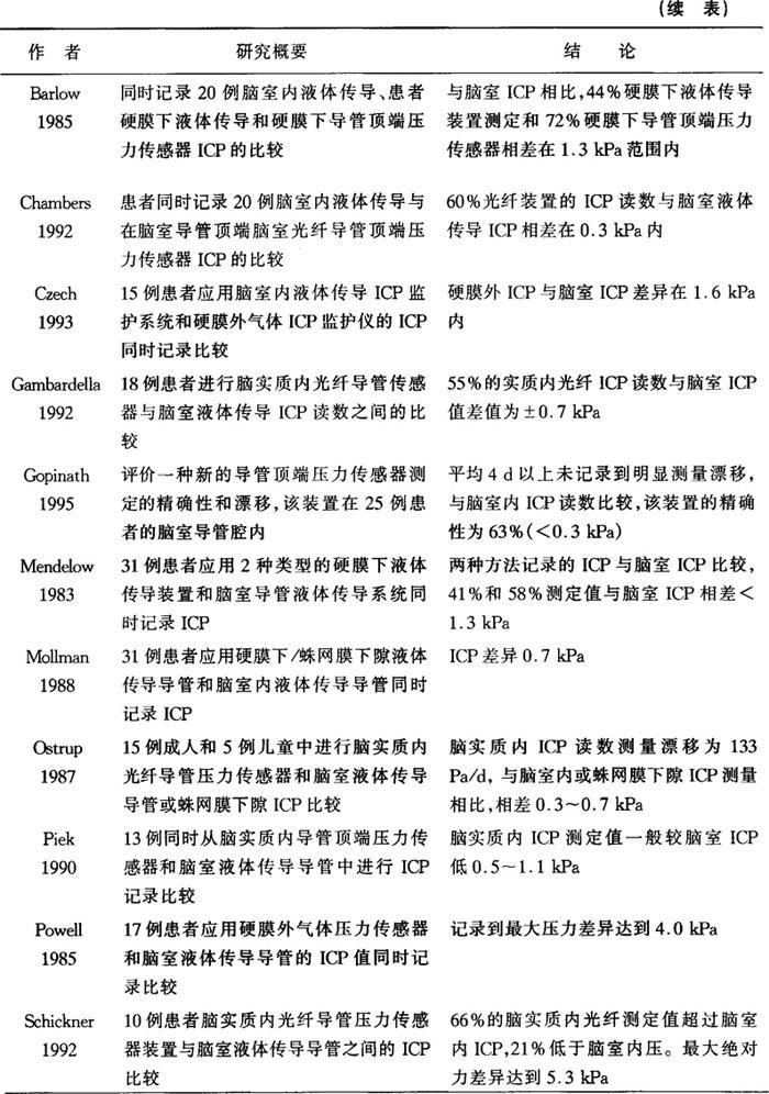 简介 1.指征 颅内压(ICP)监护适用于入院头部CT检查有异常的重型脑外伤患者(GCS3~8分)。头部CT检查异常指发现有颅内血肿、脑挫裂伤、脑水肿或基底池受压。另外,ICP监测还应用于CT检查正常的40岁以上、单侧或双侧锥体束征阳性、收缩压<12.0kPa的重型脑外伤患者。 2.方法 常用脑室法。此法操作简单,精确度高,可放出脑脊液降低颅压。其次为硬脑膜外法及硬脑膜下法。光纤颅压监测也是一种简单可靠的方法。 一、概述 颅内压(intracranial pressure,ICP)是指颅腔内容物对颅壁的压力,也是颅脊髓腔内的压力与大气压之间的压力差。ICP是重型颅脑创伤患者的一项重要观察指标。 1.量化监测颅内压 根据ICP具体数据将颅内高压分为三型。成人平卧安静时腰穿ICP正常值为0.7~2.0kPa,当ICP达2.1~2.7kPa时为轻型增高,2.8~5.3kPa为中型增高,5.3kPa以上为重型增高。 2.了解颅内压容积代偿能力 颅内容积增加早期,由于代偿作用,压力增加不明显,但超过临界点则失代偿,此时颅内容积稍增加,可使ICP剧增,出现脑疝。压力容积关系可以从颅内的顺应性及回缩性预测,顺应性代表颅腔代偿空间,回缩性是顺应性的倒数。压力容积指数也能反应颅内压的代偿情况。 3.早期发现颅内病变,早期予以处理 在ICP轻度增高及中度增高的的早期,生命体征(脉搏、血压及呼吸等)、神智、瞳孔尚无明显变化的时侯,颅内压监测(ICPM)已明确显示ICP增高的情况及增高的程度。因此监测可以在颅内高压出现相关症状、体征之前,早期发现ICP已经增高,以便进一步检查,如CT扫描;有利于早期诊断,早期发现迟发血肿及术后复发血肿,早期进行处理。 4.监测脑灌注压(cerebral perfusion pressure,CPP)与脑血流量(cerebral blood flow,CBF) 脑组织获得的血流量与全身平均动脉压(mSAP)、平均颅内压(mICP)、脑血管阻力(CVR)等因素密切相关。CPP=mSAP-mICP。CBF=(mSAP-mICP)/CVR=CPP/CVR。正常的CPP9.3~12.0kPa,这时脑血管自动调节功能良好,如因ICP增高使CPP下降,能通过血管扩张使CVR降低来维持CBF在正常范围内。但当ICP>5.3kPa,CPP<6.7kPa时,脑血管自动调节失败,脑血管不能相应扩张,则CVF急剧下降。当ICP上升接近平均动脉压水平时,颅内血流几乎完全停止,患者处于严重脑缺血状态,患者可以在20s内进入昏迷状态,4~8min可能进入植物生存状态甚至死亡。因此,在监测ICP的同时监测mSAP,获得CPP信息,有可能及时治疗及预防上述情况的发生。 5.指导治疗 ICP对指导治疗颅内高压有重要意义,医师可根据ICP的客观资料随时调整治疗方案。大量资料表明,所有控制ICP的方法均有不良作用。强化长时间的过度换气,PCO2<3.3kPa可能会因脑血管收缩造成脑缺血,导致预后不良。短期内大剂量使用甘露醇,不仅可能导致肾功能衰竭,而且可因其蓄积、漏入脑组织间隙而加重脑水肿。在严重的颅内高压病例中,可以应用巴比妥类药物进行昏迷疗法治疗,此时根据ICP监测的数值,决定用药剂量、是否继续或终止这一疗法。ICP监测在治疗中起著重要作用。 6.提高疗效,降低死亡率 由于能早期发现ICP增高,及时指导应用降颅内压药物,引流脑脊液(CSF),降低ICP,提高CPP;早期发现颅内血肿,及时清除血肿,因此能提高治疗效果,明显降低严重颅脑外伤的死亡率。 7.判断预后 Marmarou1991年对428例患者进行了ICP及BP监测,发现与预后有关的因素中,除年龄、入院运动评分及瞳孔变化外,最重要是ICP>2.7kPa,其次是收缩压<10.6kPa。Jennett1977年报道GCS≤8分,持续≥6h,死亡率接近50%。Becker及Marmarou分别于1977年及1991年报道,应用包括ICP监测在内的强化治疗后,死亡率降至30%~36%。 二、论点形成过程 通过MEDLINE、《中国医学科学技术期刊索引》检索1970年1月1日至2001年8月30日文献,输入关键词脑外伤、颅内压及颅内压监测,发现相关文献645篇,其中英文594篇,中文51篇。对上述文献浏览后,重点对其中50篇进行重点阅读,取其精华,进行综述。 三、科学基础 (一)支持和反对ICP监测的证据 大多数学者认为重型颅脑创伤患者行颅内压监测有助于提高治疗效果,故提倡使用颅内压监测技术。1977年Jennett等报道3个国家重型脑外伤预后情况。所有中心的昏迷患者(GCS≤8分,持续至少6h)死亡率接近50%。随后不久,Becker等报道应用包括ICP监测在内的强化治疗方案后显著降低了死亡率(30%)。与此同时,其他医学中心也报道了相似报道。1982年,Saul和Ducker报道127例ICP>2.7~3.3kPa,GCS≤7分患者行甘露醇及CSF引流治疗的前瞻性研究,另外106例重型脑外伤患者接受相似的治疗,但控制ICP在较低水平(2.0kPa)。他们发现高颅内压组患者死亡率为46%,而低颅内压组患者死亡率为28%(P<0.0005)。1988年,Eisenberg等报道对难以控制的ICP升高患者采用苯巴比妥治疗的多中心研究。他们发现经治疗后ICP降低的患者预后较ICP不降低患者的预后好。1989年,Colohan等报道弗吉尼亚大学医学院和印度新德里脑外伤预后的比较研究(美国822例,新德里511例)。两个中心中(GCS运动评分1分)患者均预后差,而按吩咐动作(GCS运动评分6分)预后均良好;具有肢体伸直、异常屈曲或屈曲回缩(GCS运动评分2、3、4分)患者在美国弗吉尼亚大学医学院的患者死亡率(40.9%)低于新德里患者的死亡率(56.2%);对疼痛刺激定位(GCS运动评分5分)患者的死亡率存在显著差异,新德里患者的死亡率(12.5%)比弗吉尼亚大学医学院的患者死亡率(4.8%)高2.5倍(P<0.01)。他们认为弗吉尼亚大学医学院运用ICP监测以及较好的重症监护条件可能是