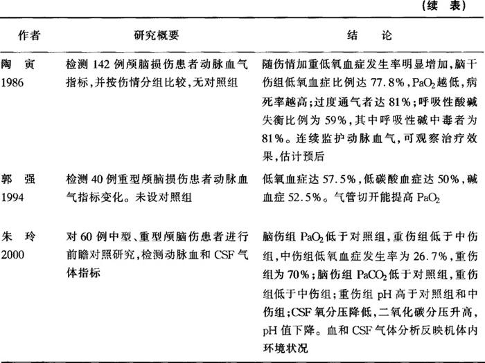 简介 1.结论 对颅脑损伤患者进行血气指标监测,能早期发现低氧血症,并为改善患者呼吸功能、纠正酸碱失衡提供依据。 2.方法选择 血气指标的变化能反映脑损伤轻重,并与预后有密切关系。根据颅脑损伤急性期的动脉血氧分压(PaO2)、二氧化碳分压(PaCO2)及酸碱平衡变化,能了解脑组织的血供和氧供状况;脑脊液(CSF)气体分析最能反映脑组织是否存在酸中毒。 一、概述 过去20多年的深入研究显示,颅脑损伤导致的脑损害分为原发性和继发性两类。继发性脑损害是影响存活率、神经功能恢复的最主要因素。其中与继发性脑损害的发生、发展密切相关的最重要因素之一是脑组织的缺血、缺氧。组织学检查已经证实,绝大多数脑伤死亡者有脑缺血(氧)的病理改变。大量的研究证据显示,脑损伤后头24h脑血流量下降超过50%,在头4h甚至可降至20ml/(100g·min)以下。另一方面,颅脑损伤可引起呼吸抑制、呼吸节律紊乱、误吸、神经源性肺水肿、肺淤血、肺通气/灌流比例失调(肺分流)等,导致呼吸功能不全,出现缺氧。研究表明,脑损伤后低氧血症常立即发生。然而,临床上判断缺氧的程度却十分困难,通常要在PaO2<6.7kPa时才有缺氧症状,发绀的出现往往标志著组织缺氧已非常明显严重。因此,及时了解脑组织氧合程度及酸碱状况,尽早采取相应的治疗措施,对降低颅脑损伤的病死率具有重要意义。 理论上CSF生化测定、气体分析更能反映脑组织代谢(包括脑氧代谢)状态。但CSF气体分析的准确性受技术操作的限制,误差比较大;脑伤后CSF血染对气体分析有影响;不同部位(脑室、延髓池、腰池)的CSF气体指标也有差别。另外,因腰穿存在诱发脑疝的风险,或血肿形成、脑肿胀致脑室受压变小,使CSF的采集存在困难,尤其是重伤患者难以常规进行CSF气体分析。近年来出现的脑组织氧分压的直接测定需要专门的设备,代价昂贵,目前尚难以普及。 PaO2、PaCO2直接影响脑血管的舒缩状态,同时血液的酸碱度影响氧在组织的释放。因此,脑组织的血供和氧供与动脉血的氧合程度及酸碱状态密切相关。血气分析具有指标多、敏感性高、标本采集方便、微创、无风险等优点,可在临床广泛应用。在过去的30多年,国内外学者对颅脑损伤后血气指标变化的规律,血气指标与脑损伤程度和预后的关系,以及血气分析的价值进行了较深入的研究。 二、论点形成过程 对1970~2001年文献进行了检索。国外文献利用MEDLINE检索,国内文献通过CMCC(中文生物医学期刊数据库)和CBMD(中国生物医学光盘)检索,输入关键词为颅脑损伤、气体分析、酸碱平衡、呼吸障碍。获得国外相关文献34篇,国内文献23篇,对所有中、英文临床研究文献均进行了复习。 三、科学基础 绝大多数研究采用动脉血标本监测血气指标,少部分研究同时对静脉血(主要是颈静脉血)和(或)CSF的气体指标进行观察,仅有极少的研究专门对颈静脉血或脑脊液气体指标进行检测。总体上看,少有大标本(>100例)研究。Zupping最早报道对45例颅脑损伤同时进行动脉血、颈静脉血和CSF气体指标检测的结果,发现脑伤组PaO2、脑脊液氧分压(CSFPO2)明显低于对照组,深昏迷患者更明显;而颈静脉血氧分压(PvO2)虽有下降,但与意识障碍无关,且死亡者PvO2高于存活者;PaO2与PvO2和CSFPO2之间无相关关系。脑伤组动脉血、颈静脉血、CSF的二氧化碳分压均明显低于对照组,昏迷和死亡者低碳酸血症最为明显。脑伤组动脉血和颈静脉血pH值升高,CSFpH值则下降;动脉血呈碱血症的原因主要是过度通气,CSF酸中毒则为乳酸含量增高所致。以后国内、国外对动脉血气指标的监测取得基本一致的结果。典型表现是,PaO2、PaCO2、明显低于正常,pH值升高,实际碳酸氢盐下降并低于标准碳酸氢盐,即呼吸性碱中毒。这些研究证实,颅脑损伤急性期低氧血症、低碳酸血症是最常见的血气指标异常。 陶寅检测142例颅脑损伤患者动脉血气指标,并按脑伤严重程度分成4组比较,发现随著脑伤加重,低氧血症比例从30%升至77.8%。其他研究也显示,中型脑损伤低氧血症发生率约为20%,重型颅脑损伤中低氧血症平均发生率一般均超过50%(48%~72.5%),可持续数天,在手术后24~48hPaO2降至最低;脑伤越重PaO2越低,昏迷、植物生存和死亡者的PaO2明显低于清醒和存活者,说明动脉血氧分压与伤情和预后有密切关系。Chesnut等认为PaO2<8.0kPa是估计预后的5个最具价值预测指标之一,但无其他研究支持确定动脉血氧分压的危险阈值。低碳酸血症发生率为50%~81%。 朱诚报道60例颅内血肿术后均有过度通气,并可持续数天,提示大多数脑伤患者存在自发性过度通气。脑伤越重低碳酸血症越明显,昏迷和死亡者低碳酸血症最明显,持续降低者预后不良。与低碳酸血症相对应,动脉血酸碱失衡主要表现为碱血症,为呼吸性碱中毒,可伴有代谢性酸中毒或代谢性碱中毒,但代谢因素较少参与脑创伤后的酸碱改变。 有关血气指标与颅内压(ICP)关系的研究较少。Paul等发现PaCO2对ICP的影响有3种类型,PaO2过度下降并不能进一步降低ICP。朱诚对ICP与血气指标变化的关系进行了比较,ICP超过2.0kPa时,PaO2明显降低,但观察病例仅5例。血气指标与ICP变化的关系尚不明确。 对CSF气体指标的检测结果仅pH值和HCO3-的下降是比较一致的发现,而氧分压、二氧化碳分压的变化各家报道差异较大,甚至相互矛盾,因此对CSF氧分压是否能反映脑组织氧合情况存在争议,这也提示脑脊液气体分析