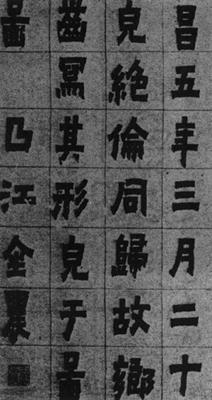 【简介】: 淸·金农书。 漆书。凡八行,共一百二十三字。刊于日本《明淸书道图说》。  。【赏析】: 金农此书介于楷隷之间。 由于金农惯于截去毫端作字,所以落笔收笔皆方。用笔横画竪下,竪画横下,行笔如刷,一方到底,虽点画波挑,亦无二致。 撇捺鈎踢,略带仰意。 金农隷书都以方扁取横势,而此楷书,横平竪直,粗细不分,结字尽成纵势。 如首行“会”字,二行“卢”字、“贤”字、“寿”字,七行“续”字,八行“书”字,八画之笔,虽间隔缩成细缝,而纵势仍很突出。此幅方严整饬,雄奇角出,笔实墨沉,苍古奇逸,别开生面,自创一格。 金农生活在康乾之世,董赵之风盛行,其师何焯爲帖学名家,而他不趋时尙,不承师学,坚持自己的艺术见解。他在《鲁中杂诗》写道:“会稽内史负俗姿,字学荒疏笑骋驰。耻向书家作奴婢,华山片石是吾师。”直接讥讽书圣王羲之,敢于与统治者所倡导的帖学唱反调,这一叛逆思想,实开嘉道以后尊碑思潮的先导。 |
