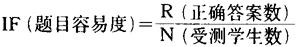 也叫”容易值”、”题目难度”。语言测验中用来确定某一测验项目容易程度的方法。学生对某一测验项目的正确回答其比例可用下列公式表示: