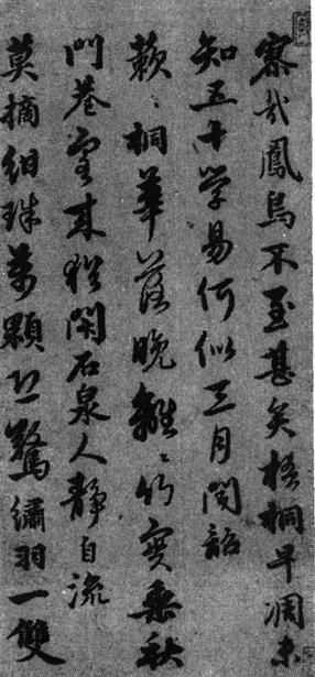【赏析】: 此作写得流畅自然,敛纵合度,气韵雄逸。饶介书学康里巙巙,但就此作观之,他得王羲之和怀素的精神又略掺章草笔意,颇有新意。作品笔力精到,通过线条自由多样的运动及空间构造,表达出作者的眞挚情感和略无碍滞的心胸。在以情掣笔,因势利导的挥运过程中,作者对笔锋的运动具有十分熟练的驾驭能力。笔锋的正与侧,力度的轻与重,速度的快慢的变化协调关係都处理得很好,因而线条运动的节奏感很强。当然,若与“二王”及怀素书法相比,此作虽有超逸的风度但气势的沉厚则显然不足。这与他用笔的露多藏少,流多涩少不无关係。 |