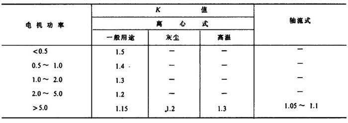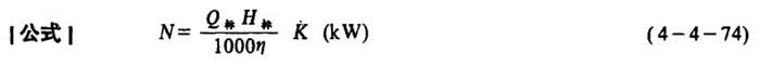 式中 K——电机容量储备系数,见表4-4-22其它同上