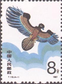 释义 | 风筝(第二组) 发行日期:1987年4月1日 齿孔度数: 印刷版别:影写版 票幅:30×40 全张枚数:50(10×5) 设计者:潘可明 印刷:北京邮票厂 (1)8分 鹰 915.65万枚 (2)8分 龙头蜈蚣 915.65万枚 (3)30分 八卦 605.4万枚 (4)30分 凤凰 605.4万枚 (1)-(4) 4枚全 注:1、2图连印,3、4图连印。 |
