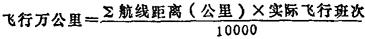 飞机担任运输生产任务,在每一条航线飞行的总里程。以万公里为单位。其计算公式为: