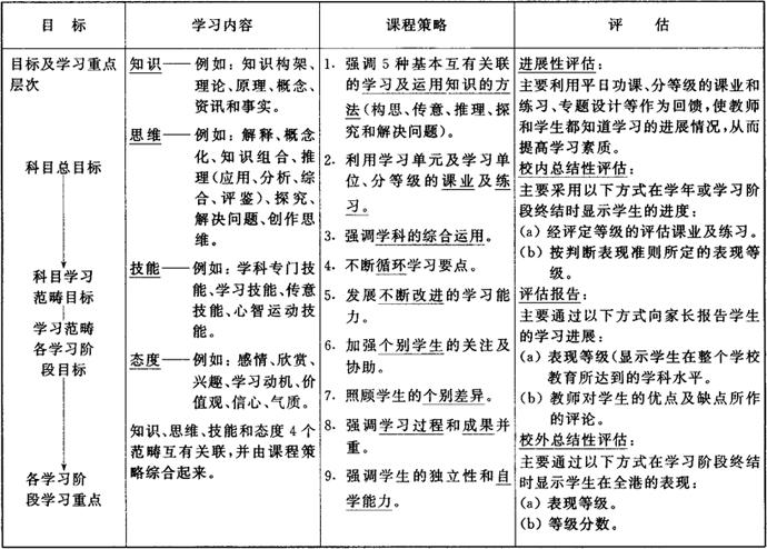 释义 | 香港推行“目标为本课程” 香港教育以往坚持学校自主,没有统一要求。教育统筹委员会的第4号报告书的第5章中,认为香港已从选择性教育转为普及性教育,因此要转变以往那种单纯选拔精英的教育评估制度,建立有利于全体学生发展的学校目标,建议香港应“制定一个由学业目标及目标为本评估组成的构架,分校内和校外两部分”。教育署根据这一精神,著手制定了一个“学习目标及目标为本评估”计划,目的是要进行一场由学习目标带动的课程、教学法及评估方法的大改革,提高中小学教学质量。教育署认为,可使教师按目标教学,选内容、定教材、用方法都可以目标为本;也可使学生明了学习目标,易于安排学习,可见到成绩,并能养成独立学习、独立思考的习惯;同时也可使评估真正成为反映教与学的实际的重要手段,有利于促进教学。1992年5月教育署公布该计划,把中小学分为4个学习阶段8个表现等级,教师根据定好的学习纲要制定学习目标和授课。其课程框架分4部分:学习目标、学习内容、课程策略或教学方法设计、课程评估。教育署为此举办培训班和研讨会,成立咨询委员会,并特邀20所小学进行实验,但仅有11所参与,原计划在1993年开始推行,后在教育界的反对下,教育署于1993年4月宣布推迟,并重新论证。后于1994年1月发布报告书指出: “目标为本课程”是香港近年来推行的较大规模的课程改革,也是著力解决困扰香港教育质量问题的重大措施之一。从推行以来,虽进展缓慢,但已初见实效。香港教育界批评这次课程改革开展缺乏准备,匆忙推行,影响效果。其实有一点可能更为重要,即因为这是一次推进课程现代化的重要尝试,它必然会带来与传统教学模式的激烈冲突。 附“目标为本课程”构架图: “目标为本课程”(TOC)构架 (以“目标为本课程”的跨课程架构为依据) 注:5种基本互有关联的学习及运用知识的方法贯穿整个课程各部分。5种方法包括:传意、探究、构思、推理和解决问题。(摘自《今日香港教育》) |