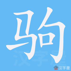 句,既是声旁也是形旁,表示勾住、系住。驹,金文=(句,系住)+(马),表示给马上缰绳。造字本义:名词,初上缰绳的少壮马匹。
