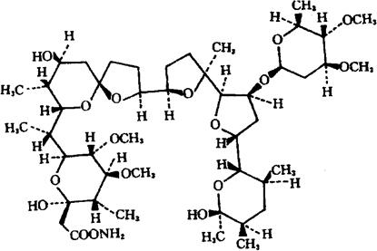 释义 | 马度米星 C47H83NO17=934.17 CAS-84878-61-5 (3R,4S,5S,6R,7S,22S)-23,27-二去甲氧-2,6,22-三去甲基-11-O-去甲基-22-[(2,6-二去氧-3,4-二-O-甲基-β-L-阿拉伯己吡喃糖基)氧]-6-甲氧洛诺霉素A单铵盐。 (3R,4S,5S,6R,7S,22S)-23,27-Didemethoxy-2,6,22-tridemethyl-11-O-demethyl-22-[(2,6-dideoxy-3,4-di-O-methyl-β-L-arabinohexopyranosyl)oxy]-6-methoxy-lonomycin A,monoammonium salt. (2R,3S,4S,5R,6S)-四氢-2-羟-6-[(R)-1-[(2S,5R,7S,8R,9S)-9-羟-2,8-二甲基-2-[(2S,2′R,3′S,-5R,5′R)-八氢-2-甲基-3′-[[(2R,4S,5S,6S)-四氢-4,5-二甲氧-6-甲基-2H-吡喃-2-基]氧]-5′-[(2S,3S,5R,6S)-四氢-6-羟-3,5,6-三甲基-2H-吡喃-2-基][[2,2′-二呋喃]-5-基]-1,6-二噁螺[4,5]癸-7-基]乙基]-4,5-二甲氧-3-甲基-2H-吡喃-2-醋酸铵。 Ammonium(2R,3S,4S,5R,6S)-tetrahydro-2-hydroxy-6-[(R)-1-[(2S,5R,7S,8R,9S)-9-hydroxy-2,8-dimethyl-2-[(2S,2′R,3′S,5R,5′R)-octahydro-2-methyl-3′-[[(2R,4S,5S,6S)-tetrahydro-4,5-dimethoxy-6-methyl-2H-pyran-2-yl]oxy]-5′-[(2S,3S,5R,6S)-tetrahydro-6-hydroxy-3,5,6-trimethyl2H-pyran-2-yl][[2,2′-bifuran]-5-yl]-1,6-dioxaspiro[4.5]dec-7-y1]ethyl]-4,5-dimethoxy-3-methyl-2Hpyran-2-acetate. 抗生素类药,抗球虫病药。 Maduramicin,CL 273,703,Cygro. INN,USAN. |