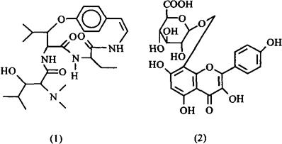 释义 | 马松子 【名称出处】:《江苏南部种子植物手册》 【概况】: 异名 假络麻(《广西药用植物名录》)。 基源 为梧桐科马松子属植物马松子的全株。马松子属全世界约54种;亚洲有2~3种,中国仅1种。 原植物 马松子Melochia corchorifolia L.,又名野路葵、野棉花秸(《中国高等植物图鉴》)。 形态 半灌木状草本,高20~80cm;枝黄褐色,散生星状短柔毛。 单叶互生;叶柄长5~25mm;托叶线形,长2~4mm;叶片卵形、长圆状卵形或披针形,偶有不明显的三浅裂,长2~7cm,宽1~1.5cm,顶端钝或急尖,基部圆形或心形,边缘有锯齿,上面几无毛,下面略被星状短柔毛,基生脉5条。聚伞或团伞花序顶生或腋生;小苞片线形,与花序混生;萼钟状,5浅裂,外面被长柔毛和刚毛,裂片三角形;花瓣5片,白色后变淡红色,长圆形,基部收缩;雄蕊5枚,下部连合成筒,与花瓣对生;子房5室,无柄,密被柔毛,花柱5,线状。 蒴果近球形,有5棱,直径5~6mm,有长柔毛,室背开裂,每室有种子1~2个。种子卵圆形,长2~3mm,褐黑色。 花期夏、秋季。(图见《中国高等植物图鉴》.第2册.831页.图3392) 生境与分布 生于田野、低山丘陵或灌丛中。 分布于中国华东、中南、西南。亚洲热带地区亦有分布。 。【化学】:含马松子素(Melofline)(1)[1]、3,4′,5,7-四羟基-8-O-β-D-葡萄糖醛酸-黄酮(2)[2]、β-谷甾醇、β-胡萝卜甙、齐墩果烷等化合物[3]。 参考文献 [1] Phytochemistry 1986;26(1):324 [2] CA 1978;88:117782g [3] CA 1988;108:201748x 【药性】: 性味 淡,平。 功效 消炎止痒,清热利湿。 主治 急性黄疸型肝炎。 用法用量 内服:煎汤,30~60g。 |
