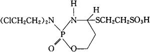 释义 | 马磷酰胺 C9H19Cl2N2O5PS2=401.26 CAS-88859-04-5 (±)-2-[[2-[双(2-氯乙基)氨基]四氢-2H-1,3,2-氧氮杂膦因-4-基]硫代]乙烷磺酸对位顺式-氧化物。 (±)-2-[[2-[bis(2-Chloroethyl)amino]tetrahydro2H-1,3,2-oxazaphosphorin-4-yl]thio]ethanesulfonic acid p-cis-oxide. 抗肿瘤药。 Mafosfamide. INN,USAN. |