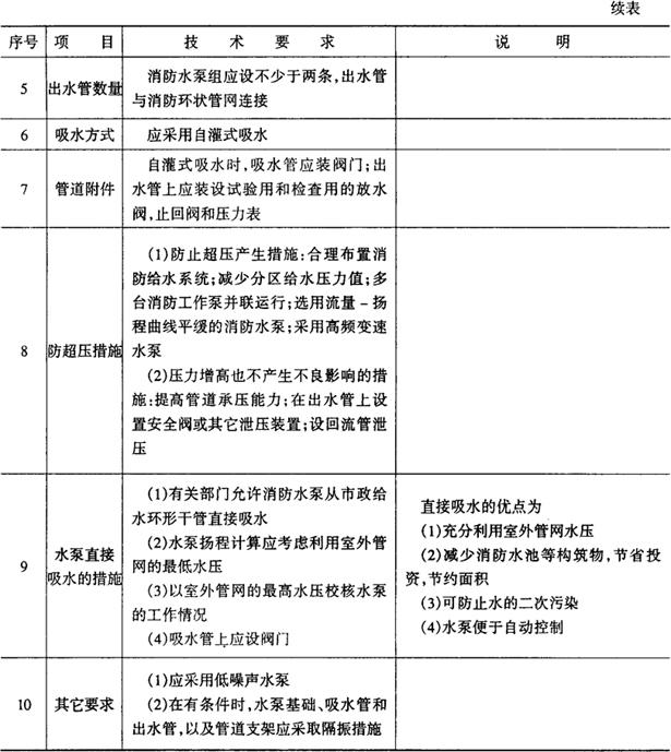 释义 | 高层建筑室内消火栓给水系统 高层建筑室内消防给水系统,包括室内消火栓给水系统和自动喷水灭火给水系统两大类。 高层建筑室内消火栓给水系统是扑救高层建筑火灾的主要手段,对于不同类别的高层建筑所需水量和灭火时间也不相同。 (一)高层建筑室内消火栓给水系统的一般规定 1.室内消火栓用水量按表3-4-24规定进行计算。 2.室内消防给水系统应与生活、生产给水系统分开,独立设置。室内消防给水管道应布置成环状。室内消防给水环状管网的进水管和区域高压或临时高压给水系统的引入管不应少于两根,当其中一根发生故障时,其余的进水管或引入管应能保证消防用水量和水压的要求。 3.室内消火栓给水系统应与自动喷水灭火系统分开设置。因为两个系统的消防灭火时间规定不一。消火栓灭火系统供水时间对于商业楼、综合楼、一类高层建筑的财贸金融楼、图书馆、书库、重要的档案楼、科研楼和高级旅馆的火灾延续时间应按3.00h计算,其它高层建筑可按2.00h计算。而自动喷水灭火系统则按火灾延续时间1.00h计算。在某些现代高层公共建筑中,为了满足平时使用功能的需要,同一层面积很大,或者中庭很高(二层及二层以上),为此往往采取防火卷帘代替防火墙进行防火分隔,诸如大型商场、展览楼、综合楼等建筑。为了确保防火卷帘阻火的可靠性,要求在防火卷帘两侧设自动喷水灭火系统保护,且为独立系统,火灾延续时间与消火栓供水系统时间一致,计算水量不应小于0.5L/(s·m),总用水量按其所需保护范围一个分区的防火卷帘总长与0.5L/(s·m)的乘积,不考虑两侧同时喷水,只按一侧计算。 4.消火栓栓口的静水压力不应大于0.8MPa,当大于0.8MPa时,应采取分区给水系统。消火栓栓口的出水压力大于0.5MPa时,消火栓处应设减压装置。 5.消防竖管的布置,应保证同层相邻两个消火栓的水枪的充实水柱同时达到被保护范围内的任何部位。每根消防竖管的直径应按通过的流量计算确定,但不应小于100mm。 18层及18层以下,每层不超过8户,建筑面积不超过650m2的塔式住宅,当设两根消防竖管有困难时,可设一根竖管,但必须采用双阀双出口型消火栓。 6.消火枪的充实水柱应通过水力计算确定,且建筑高度不超过100m的高层建筑不应小于10m,建筑高度超过100m的高层建筑不应小于13m。 7.消火栓栓口离地面(或楼板面)高度宜为1.1m,栓口出水方向宜向下或与设置消火栓的墙面相垂直。在同一建筑物内消火栓应采用同一型号规格,消火栓的栓口直径宜为65mm,水带长度不应超过25m,水枪喷嘴口径不应小于19mm。 8.消火栓的布置除无可燃物的设备层外,高层建筑和裙房的各层均应设室内消火栓。消灭栓应设在走道、楼梯附近等明显易于取用的地点,消火栓的间距应保证同层任何部位有两个消火栓的水枪充实水柱同时到达。 9.消防电梯间前室应设消火栓,是专门为消防队员尽快使用消火栓扑救火灾并开辟通道而设的,在计算消防灭火水柱时不应包括在内。 10.临时高压给水系统的每个消火栓处应设直接启动消防水泵的按钮,并应设有保护按钮的措施。按钮可设于消火栓箱内,也可设于箱外附近。 11.高层建筑的屋顶应设一个装有压力显示装置的检查用的消火栓,采暖地区可设在顶层出口或水箱间内。有停机坪的屋面也应在适当位置设置消火栓。 12.避难层应设有消火栓和消防卷盘。 (二)消防水泵接合器的设置 1.室内消火栓给水为竖向分区供水时,在消防车供水压力范围的分区,应分别设置水泵接合器。 2.水泵接合器配置的数量应按室内消防用水量经计算确定,每个水泵接合器的流量按10~15L/s计算。 3.水泵接合器应设在室外便于消防车使用的地点,距室外消火栓或消防水池的距离宜为15~40m。 4.水泵接合器可分为墙壁式、地上式、地下式三种,一般宜选用地上式。若采用地下式水泵接合器,应有明显标志。 (三)高位消防水箱的设置要求 采用常高压给水系统时,可不设高位水箱。当采用临时高压给水系统时,应设高位消防水箱。一般高位消防水箱与生活给水系统的水箱合建,可以是单个的也可以是双个的。水箱可用钢筋混凝土、钢板、组合式热镀锌钢板、搪瓷钢板、玻璃钢等材料制成。当与生活给水系统合用水箱时应有确保消防用水不作他用的措施。 1.高位消防水箱的消防储水量。一类公共建筑不应小于18m3,二类公共建筑和一类居住建筑不应小于12m3,二类居住建筑不应小于6m3。 2.高位消防水箱的设置高度。高位消防水箱的设置高度应保证最不利点消火栓所需静水压力。当建筑高度不超过100m时,高层建筑最不利点消火栓静水压力不应低于0.07MPa,当建筑高度超过100m时,高层建筑最不利点消火栓静水压力不应低于0.15MPa。当高位消防水箱不能满足上述静压要求时,应设增压装置,其增压水泵出水量不应大于5L/s,气压水罐的调节容量宜为300L。如果增压水泵的出水量和气压罐的调节容量过大,会造成延误消防主泵的启动时间,对及时扑救火灾不利。 3.并联供水方式的分区消防水箱容量应与高位消防水箱相同。 4.除串联消防给水系统外,发生火灾时由消防泵供给的消防用水不应进入高位消防水箱。 (四)消火栓给水系统图式 1.按消火栓给水系统服务的范围分 (1)具有独立的室内消火栓给水系统,即每幢高层建筑具有自己的一套独立供水系统。这种系统的特点是便于维护管理,安全可靠性高,特