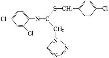 释义 | 16.酰胺唑 中文通用名称:酰胺唑,英文通用名称:imibenconazole,其他名称:霉能灵、Manage,化学名称:4-氯苄基N-2,4-二氯苯基-2-(1H-1,2,4-三唑-1-基)硫代乙酰胺酯,化学分子式:C17H13Cl3N4S,相对分子量:411.7。 化学结构式: 理化性质:纯品为白色结晶,熔点89.5~90℃,密度0.784(25℃),蒸汽压:8.5×10-5mPa。溶解性(25℃):水1.7mg/L,丙酮1063g/L,苯580g/L,二甲苯250g/L,甲醇120g/L。对日光稳定。 毒性:大鼠急性经口LD50>5g/kg。 农药类别:低毒杂环类杀菌剂。 |