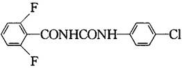 中文通用名称:除虫脲,英文通用名称:diflubenzuron,其他名称:敌灭灵、伏虫脲、灭幼脲一号、Dimilin,化学名称:1-(4-氯苯基)-3-(2,6-二氟苯甲酰基)脲,化学分子式:C14H9ClF2N2O2;相对分子量:310.7。 化学结构式:  理化性质:纯品为白色结晶,熔点230~232℃。蒸汽压1.32×10-5Pa(50℃)。原药外观为白色至浅黄色结晶粉末,密度1.56,熔点210~230℃。20℃时在水中溶解度为0.2mg/L,丙酮6.5mg/L,易溶于极性溶剂如乙腈、二甲基砜,也可溶于一般极性溶剂如乙酸乙酯、二氯甲烷、乙醇。在非极性溶剂中如乙醚、苯、石油醚等很少溶解。遇碱易分解,对光比较稳定,对热也比较稳定。常温贮存稳定期至少两年。 毒性:原药大小鼠急性经口LD50>4640mg/kg,兔急性经皮LD50>2000mg/kg,急性吸入LC50>30mg/m3。对蜜蜂和鸟类毒性低。 农药类别:低毒特异性昆虫生长调节剂。 |