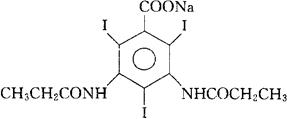 释义 | 高泛影酸钠 C13H12l3N2NaO4=663.95 CAS-129-57-7 3,5-二丙酰胺基-2,4.6-三碘苯甲酸钠。 3,5-Dipropionamido-2,4.6-triiodobenzoate sodium. 造影药。 Diprotrizoate Sodium,Sodium Diprotrizoate,Miokan Sodium. INN,BAN,NFN,USAN,MI. |