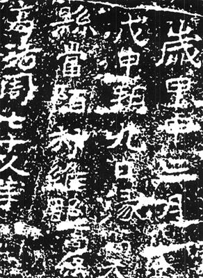 【简介】: 全称《涿县当陌村头维那高洛周七十人等造释迦像》。北魏正始元年(504)三月刻。中间爲佛像,文字刻在四周。正书。记十二行,行三至七字不等。左右皆刻题名。河北涿县出土。曾归长白端方、诸城王緖祖。今在法国巴黎博物院。《中国书法大辞典》著录。 【赏析】:  《高洛周七十人造像记》字面漫漶,点画字口多有坏损,然迹象仍依稀可辨。 北魏造像书刻风格,以奇崛险劲突出,而潇散宽疏一路略少,《高洛周七十人造像记》书风则以此爲特徵。字的整体取势多爲横向,左右开张,疏朗宽博,如“元”、“太”、“岁”、 “戊”、“朔”、“九”、“县”、“陌”、“周”等字。体构近同于《郑文公碑》。笔法上大起大落,沉著痛快。由于溃蚀而致刀意的退化,点画更显得圆浑遒劲。有隷意,风规古朴体气拙厚。 |