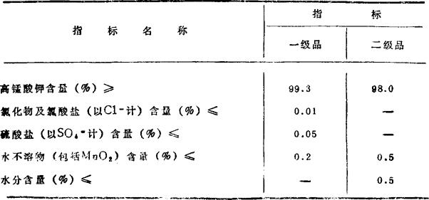 表1-61 高锰酸钾的质量标准(GB1603-79)