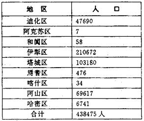 注:此表最后一行是1948年从甘肃和青海迁回新疆的人数,虽不是1944年的人口,但为便于大家了解情况,今附入表中。