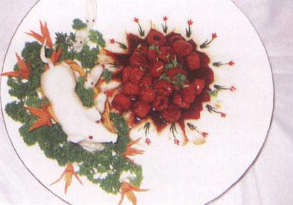 鲁菜是中国影响最大、流传最广的菜系之一。 鲁是山东省的简称,山东是中国古文化发祥地之一,地处黄河下游,气候温和,境内山川纵横,河湖交错,沃野千里,物产丰富。其粮食产量目前居中国第三位,蔬菜种类多,品质优良,是中国重要的蔬菜产地。山东是孔子的故乡所在地,鲁菜处处体现著孔子“食不厌精,脍不厌细”的饮食理念,讲究调味纯正,口味偏于咸鲜,具有鲜、嫩、香、脆的特色。常用的烹调技法有30种以上,尤擅“爆、炒、烧、塌、扒”。 明、清两代,鲁菜已是宫廷御膳主体。以清代国宴规格设置的“满汉全席”,使用全套银餐具,196道菜,全是山珍海味,可谓奢华至极。 作为北方第一菜系,喜庆寿诞的高档宴席和家常菜的许多基本菜式都是由鲁菜发展而来的,不仅如此,鲁菜对京、津、东北等地特色风味菜肴的形成还有著重要的影响。山东人豪爽好客,特别讲究待客之道,惟恐客人吃不饱吃不好,因此菜量很大,在山东人家做客要有一吃到底的心理准备。  九转大肠 |