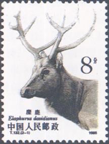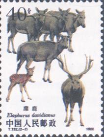 | 释义 | 麋鹿 发行日期:1988年12月20日 齿孔度数: 印刷版别:影写版 票幅:30×40 全张枚数:50(10×5) 设计者:许彦博 印刷:北京邮票厂