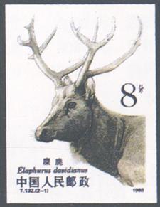 (1)8分 麋鹿 (2)40分 麋鹿群 (1)(2) 2枚全 麋鹿(无齿孔票
