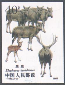 (1)8分 麋鹿 (2)40分 麋鹿群 (1)-(2) 2枚全 注:无齿孔票面值与有齿孔票相同,售价为有齿邮票的1.5倍。 |