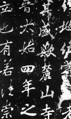 【作品赏析】: 此碑为北海生平杰作,最享盛誉。 碑以残剥,“然其锋颖尚凌厉不可一世。北海奇人,故所书尔尔”(《庚子销夏记》)。“李北海《麓山寺碑》最为艺林所重,其笔力雄健浑厚,因能深入魏晋诸家各室”。(《古泉山馆金石文编》)。 《宣和书谱》说他:“初学右军行法,既得其妙,复乃摆脱旧习,笔力一新”。 此碑书法用笔略肥而取其遒润,喜用方折笔并夸张地顿挫,显得姿肆雄强。 在结体上,中心紧密,笔势外张,多呈欹侧之势,外拓取姿而内 有法,充分融汇和发挥了王、欧、虞、褚等诸家特点,为盛唐书坛掀开了新的一页。 李邕书法对于后世,特别是对宋、元书家(如苏、黄、赵)的影响是很大的。。  唐 李邕 行楷书 刻于开元十八年(730) 28行 行56字 在长沙岳麓书院 |