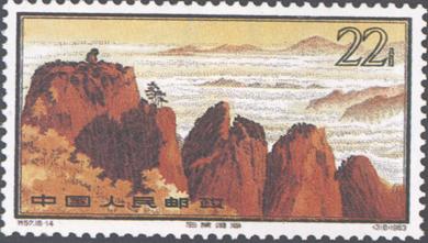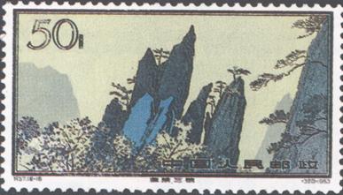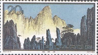 发行日期:1963年10月15日 齿孔度数: 印刷版别:雕刻版和影写版 图幅:(1)-(8)27.5×48;(9)-(16)48.5×27 全张枚数:(1)-(8)50(10×5);(9)-(16)50(5×10) 照片原作:陈勃、王君华、黄翔、鲍萧然、程默、邵柏林 设计者:孙传哲 雕刻者:孔绍惠、唐霖坤、高品璋、孙鸿年 印刷:北京邮票厂                 (1)4分 玉屏峰 400万枚 (2)4分 迎客松 400万枚 (3)4分 后海松石 400万枚 (4)4分 清凉台 400万枚 (5)8分 天都远眺 600万枚 (6)8分 剪刀峰 600万枚 (7)8分 万松林 600万枚 (8)8分 梦笔生花 600万枚 (9)10分 莲花峰 300万枚 (10)10分 西海云潮 300万枚 (11)10分 黄山古松 300万枚 (12)10分 东海观潮 300万枚 (13)20分 石笋峰 250万枚 (14)22分 石猴观海 100万枚 (15)30分 狮子林 100万枚 (16)50分 蓬莱三岛 100万枚 (1)-(16) 16枚全 |