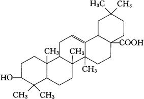 释义 | 齐墩果酸[中] C30H48O3=456.71 CAS-508-02-1 3-羟基-3β-齐墩果-12-烯-28酸。 3-Hydroxy-3β-olean-12-en-28-oic acid. 抗肝炎药。用于治疗急、慢性肝炎。 石竹素。 Oleanolic Acid,Oleanol,Caryophyllin. 齐墩果酸片。 MI. |