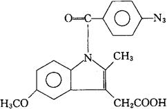 释义 | 齐多美辛 C19H16N4O4=364.36 CAS-62851-43-8 1-(4-叠氮苯甲酰基)-5-甲氧基-2-甲基-1H-吲哚-3-醋酸。 1H-Indole-3-acetic acid,1-(4-azidobenzoyl)-5-methoxy-2-methyl-. 1-(对-叠氮苯甲酰基)-5-甲氧基-2-甲基吲哚-3-乙酸。 1-(p-Azidobenzoyl)-5-methoxy-2-methylindole-3-acetic acid. 消炎镇痛药。 Zidometacin, INN,USAN. |
