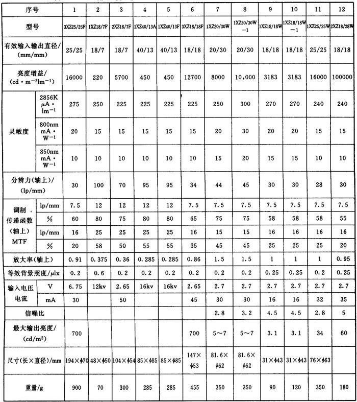 表7-13 无锡湖光仪器厂(国营559厂)二代微光像增强器主要技术参数
