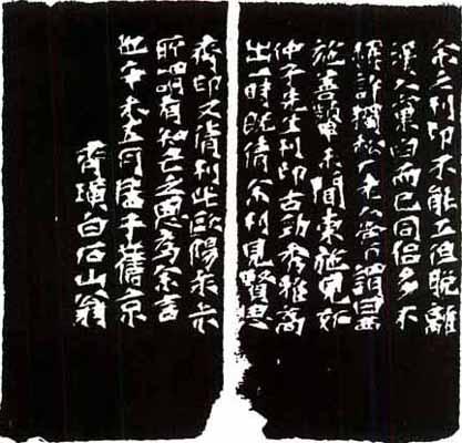 释义 | 齐白石 齐白石(1863—1957)是篆刻艺术史上继吴昌硕之后的又一个大师。其创造之丰隆,个性之强烈,可以说是前无古人的。 齐白石在艺术上之所以能够独树一帜,取得开宗立派的成就,其一在善于学习传统,其二在于艺术上能固执己见,不阿世媚俗的个性与人品。 他在自叙中写道,二十岁以前开始刻印,历经数变。初以丁、黄入手,数年后学赵之谦。这一阶段,可以说是从印中学印,从前人的优秀作品中,得到了“老实爲正,疏密自然”(见《白石印草》自叙)等篆刻的一般规律和基本手段。我们从若干印作,如图一“乐石室”中,可以看出他对篆刻艺术语言的领悟能力与紥实的技能技巧。当然,这些作品还带有一些模仿的痕迹。 有了相当的基础之后,齐白石很快把眼光放到印外。他首先爱上了《天发神谶碑》那十分独特的造型风格。此碑与衆不同之处在于:用笔方入而尖出,结字上密而下疏,如刀切斧截,雄强劲健。“八砚楼”(见图二)则很恰当地吸收了这些特点。这种结字上的疏密处理,一直影响到齐白石晚期篆刻风格的形成。“疏可走马、密不通风”,空间分割的大起大落,极大地强化了作品的节奏感。不过,我们还可以看到,在局部的疏密处理上,这方印仍追求匀称平整,用刀上也仍不免于修饰。 “变则生”,齐白石于此深有所悟。他在自叙中写道:“再后,喜秦权,纵横平直,一任自然,又一大变。”这一变,铸成了齐白石印章的最后风貌。秦权量诏版文字,歪歪斜斜,稚拙天趣,绝去雕饰。与汉魏将军印多有不谋而合之妙。齐白石敏锐地抓住这一点,借鑒书画大写意手段,以单向冲刀之法,不削不做,刻出了痛快淋漓、自然奔放的艺术风格。我们从另一方“乐石室”,(见图三)可以看出与图一的明显差别。图一将笔画较多的“乐”字独占右边,目的是取得左右笔画疏密的匀称统一。而图三则反其道而行之,将“乐”与“石”安排在右面,将极力简化了的“室”字独佔左面,并在左下角大块留红,强调了左右的疏密对比。这种空间处理,显示了齐白石敢于打破一般程式的胆识。 齐白石的几首论印诗,充分道出了他对于篆刻二字的艺术见解:“做摹蚀削可愁人,与世相违我辈能。快剑断蛟成死物,昆刀截玉露泥痕。”并在此诗的前后写道,“古今人于刻石只能蚀削,无知刻者……”,“世间事贵痛快,何况篆刻风雅事也。”于此可见,齐白石的所谓“刻”,是放刀直干,是眞正的运刀如笔,容不得丝毫修修描描的。对“刻”的此种理解,眞是发前人之所未发。从图四“中国长沙湘潭人也”一印中,我们可以深深体味到那大刀阔斧、直往直来的豪迈气槪。欣赏之余,我们似可想见老人驱刀挥运之态,似闻刀落石破的嘠嘠之音。 朱文印与白文印十分统一,从这点上也显示了齐派印章艺术的成熟。除篆法结字相类外,朱文印字与字、字与边之间粘接十分紧密,使得空间结构更加紧凑、饱满。其边栏往往比印文粗厚,似乎得力于封泥,而又不露痕迹。(图五)图六“白石”二字,笔划相等,且下部均爲一个方形结构,十分难于安排。而一经大师之手,则变得如此新頴生动。首先将“白”字上疏下密,“石”字则上密下疏,“白”字一斜笔穿入“石”字下部,“石”字一横则揷入“白”字上部。且将“石”字之“口”部枕于“白”字之上。使得二字顾盼生情。另外,“石”字一横无意中向下倾侧,打破了诸多横画的平直,可谓匠心独运。 图七“人长寿”是齐白石朱文印代表作之一。此印以“长”字和“寿”字多达十九笔的横画奠定了一个基调,这些横画有疏密、长短、虚实、粗细之变化,又统一于平直之中。竪画大都欹侧挺拔,达到静中寓动的效果。所有线条都结结实实地粘接爲一个不可动摇的整体,给人以钢浇铁铸般的力感。图八的“尧仁之章”线条粗浑厚实,边栏亦不加修饰。在构图上空出左边,密结中见疏蕩,这种手法在齐印中并不多见。 图九“不知有汉”也是齐白石朱文印中成功的作品。此印的边款中,齐白石记下了他在篆刻艺术上的思考:“余之刻印不能工,但脱离汉人窠臼而已。”这正是印文“不知有汉”的眞正含意。当时的结果却是“同侣多不称许”。而齐白石凭著对艺术的一片赤诚之心,以一意孤行的勇气,终于开创出篆刻艺术史上的一代新风,得到了应有的历史评价。 |
