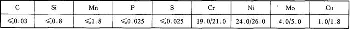 | 释义 | 00Cr20Ni25Mo4.5Cu(2RK65) (1)钢号简介 00Cr20Ni25Mo4.5Cu是一种含铜的高钼奥氏体不锈钢。此钢既可解决硫酸、磷酸、醋酸、醋酸和甲酸混酸的均匀腐蚀问题,又可解决一些氯化物环境中的点蚀、缝隙腐蚀和应力腐蚀问题,它是已被广泛接受和成功使用的耐蚀结构材料。 (2)化学成分 00Cr20Ni25Mo4.5Cu的化学成分见表1-241。 表1-241 00Cr20Ni25Mo4.5Cu的化学成分,wt%