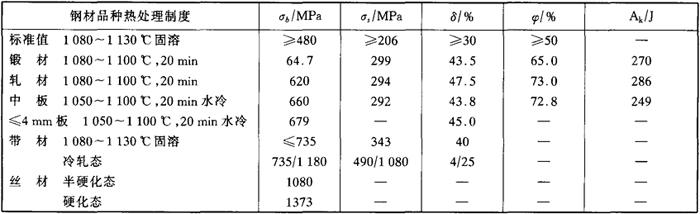 (3)室温力学性能 00Cr20Ni25Mo4.5Cu的室温力学性能见表1-242。 表1-242 00Cr20Ni25Mo4.5Cu的室温力学性能