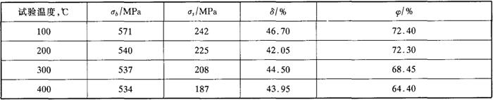 (4)高温力学性能 00Cr20Ni25Mo4.5Cu钢高温力学性能见表1-243。 表1-243 00Cr20Ni25Mo4.5Cu钢的高温瞬时力学性能