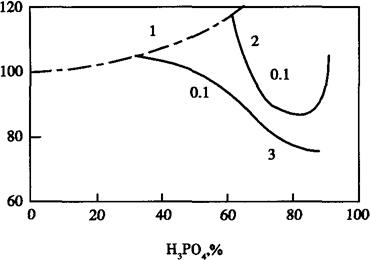 图1-251 00Cr20Ni25Mo4.5Cu在H3SO4中的腐蚀图(≤0.1mm/a) 1-沸腾曲线;2-00Cr20Ni25Mo4.5Cu;3-00Cr17Ni14Mo2
