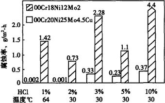 图1-255 00Cr20Ni25Mo4.5Cu在HCl酸中的腐蚀