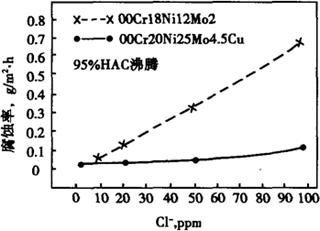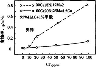 图1-258 在95%HAC+1%甲酸+Cl溶液中的耐蚀性
