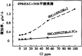 图1-259 在49%HAC+34%甲酸+Cl溶液中的耐蚀性