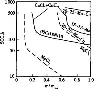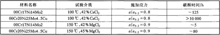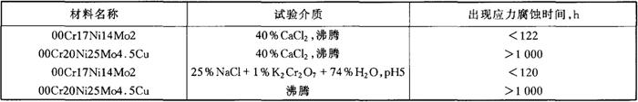 d.应力腐蚀 00Cr20Ni25Mo4.5Cu的耐应力腐蚀破裂性能见表1-245和表1-246和图1-268。 表1-245 00Cr20Ni25Mo4.5Cu的耐应力腐蚀性能(U型弯曲试样)