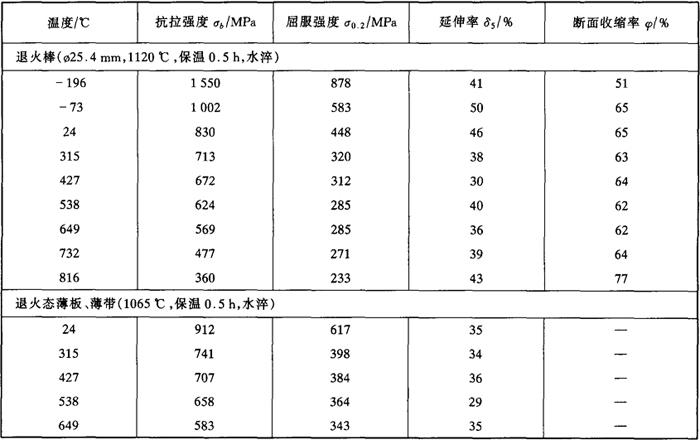 释义 | 00Cr22Ni13Mn5Mo2N(Nitronic50) (1)牌号简介 00Cr22Ni13Mn5Mo2N钢既具有较好的耐蚀性,又有较好的强度。甚至在严重冷变形下或者在低温下长时间暴露,仍具无磁性。该钢一般应用于石化、化学、纸浆和造纸、纺织、食品加工及海洋工业中。 (2)化学成分 见表1-289。 表1-289 化学成分 (3)力学性能 见表1-290和表1-291。 表1-290 典型的低温、室温和高温力学性能 表1-291 V型缺口冲击功(J) 注:①焊接接头经675℃,保温1h处理。 (4)冷作硬化特性 见表1-292。 表1-292 冷变形对力学性能的影响 (5)疲劳性能 见表1-293。 表1-293 光滑试样的室温疲劳强度 (6)持久强度见表1-294。 表1-294 不同温度下的持久强度 (7)耐腐蚀性能 00Cr22Ni13Mn5Mo2N在很多介质中表现出优异的耐蚀性能。其中一些的耐蚀性见表1-295。国外已推荐将该钢用作与食品接触的表面材料。 表1-295 00Cr22Ni13Mn5Mo2N在三种介质中的腐蚀情况 注:①5周期,每周期48h。 00Cr22Ni13Mn5Mo2N经过650℃,1h敏化处理后具有优异的耐晶间腐蚀性能如表1-296所示。 表1-296 00Cr22Ni13Mn5Mo2N耐晶间腐蚀性能 00Cr22Ni13Mn5Mo2N经静止海水浸泡9个月后,完全没有受到侵蚀。而同样条件下,316钢表现出较严重的点蚀及缝隙腐蚀现象。 00Cr22Ni13Mn5Mo2N在热氯化物环境下也遭受应力腐蚀。在45%沸腾MgC12溶液中,该钢表现出和316相当的耐应力腐蚀破裂性能。 (8)工艺性能 该钢有较好的冷、热加工性能。00Cr22Ni13Mn5Mo2N可加工成棒、丝、板、带、管等材料。开锻温度以控制在1175~1230℃为宜。在冷加工时,该钢有较高的冷加工硬化倾向,可通过1120℃退火处理软化。由于该钢有较高的硬度及韧性,故其机加工性能比316困难,对刀具的要求也比较高。 该钢可以比较容易地采用常规焊接方法进行焊接。焊接接头有与母材相当的强度。已经设计出配套的焊接材料W22-13-5。 (9)热处理 退火及冷加工后的再结晶处理:1065~1120℃,厚板水淬,薄板空冷。 不能通过任何热处理改变该钢的硬度,只能通过冷变形。 (10)物理常数 密度:7.88g/cm3 膨胀系数:(24~93℃) 9.09×10-6/K (24~426℃) 9.9×10-6/K (24~870℃) 11.1×10-6/K 热导率(W/m·K): 140℃ 19 482℃ 24 815℃ 30 电阻率(nΩ·m): 820 磁导率H(A/m): 16000 固溶态 1.004 冷变形27% 1.004 冷变形75% 1.004 (11)应用 00Cr22Ni13Mn5Mo2N可广泛应用于各类泵、阀,紧固件,线缆,海洋用材料,热交换件,弹簧及照相器材。 |