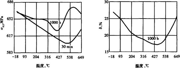 释义 | 0Cr15Ni25MoTiA1VB(A-286) (1)钢号简介 0Cr15Ni25MoTiA1VB是一种采用生成金属间化合物Ni3(Al、Ti)、Ni3(TiA1)强化的奥氏体沉淀硬化不锈钢。此钢主要用于小于705℃的工作环境下,要求具有高强度和优良耐蚀性的部件或设备。0Cr15Ni25MoTiA1VB钢具有高的缺口强度,超过与之可比的任何商业合金。在温度低于980℃的抗氧化性能相当于0Cr25Ni20。在时效条件下,此钢的屈服强度水平可达600MPa。 (2)化学成分 0Cr15Ni25MoTiA1VB的化学成分见表5-115。 表5-115 0Cr15Ni25MoTiA1VB的化学成分,wt% (3)室温力学性能 标准所规定的室温力学性能指标见表5-116。 表5-116 0Cr15Ni25MoTiA1VB的室温力学性能指标 不同热处理状态的0Cr15Ni25MoTiA1VB的典型室温力学性能见表5-117。 表5-117 0Cr15Ni25MoTiA1VB的典型室温力学性能 淬火的冷却速度对经时效的0Cr15Ni25MoTiA1VB的室温力学性能的影响见表5-118。 表5-118 冷却速度对0Cr15Ni25MoTiA1VB室温力学性能的影响 注:试样热处理由980℃冷至535℃+720℃×16h空冷。 钢的冲击性能和温度之间的关系见表5-119。 表5-119 温度对钢的冲击性能的影响 (4)疲劳和断裂韧性 0Cr15Ni25MoTiA1VB的疲劳裂纹扩展速率见图5-32。 图5-32 0Cr15Ni25MoTiA1VB的疲劳裂纹扩展速度 (室温下为3Hz,高温下为0.67Hz;R=0.05,L-T,T-L,R-C和R-L取向) 用J-积分方法获得的断裂韧性见表5-120。 表5-120 0Cr15Ni25MoTiA1VB的断裂韧性 注:OC为油冷。 (5)高温力学性能 Φ22mm棒材,经980℃×1h油淬后,再经718℃时效16小时后空冷的0Cr15-Ni25MoTiA1VB的高温瞬时拉伸性能见表5-121。薄板的高温拉伸性能见图5-33。淬火冷却速度对钢的高温拉伸性能的影响见表5-122。 表5-121 0Cr15Ni25MoTiAIVB的高温拉伸性能 图5-33 经982℃×1h(在Ar)油冷+718℃×16h处理的1.6mm薄板,高温时效对其高温屈服强度和延伸率的影响 表5-122 冷却速度对钢的高温拉伸性能的影响 注:从980℃冷至535℃,而后经720℃×16h时效空冷。 0Cr15Ni25MoTiA1VB的高温缺口强度见图5-34。 图5-34 0.66mm薄板纵向试样的缺口强度冷轧变形量80%+593℃×16h时效 0Cr15Ni25MoTiA1VB的高温承载(bearing)强度以及高温时效对承载(bearing)强度的影响见图5-35和图5-36。 图5-35 0Cr15Ni25MoTiA1VB薄板(3mm)的高温承载(bearing)强度和承载(bearing)屈服强度 (试样经982℃×1h油冷+718℃×16h时效处理) 图5-36 时效时间对0Cr15Ni25MoTiA1VB钢高温承载强度的影响 (试样为1.6mm板材,热处理制度为982℃×1h油冷+718℃×16h时效) 0Cr15Ni25MoTiA1VB的高温疲劳性能见表5-123。裂纹扩展速率见图5-32和图5-37。 表5-123 0Cr15Ni25MoTiA1VB棒材的疲劳强度 图5-37 在595℃0Cr15Ni25MoTiA1VB钢在空气和真空中疲劳裂纹扩展速度 (塑性应变范围:0.2%) 0Cr15Ni25MoTiA1VB的持久强度见图5-38。 图5-38 棒材的持久强度 (试样为982℃×1h油冷+718℃×16h时效) 钢的蠕变行为见表5-124和图5-39至图5-41。 表5-124 0Cr15Ni25MoTiA1VB的蠕变强度 图5-39 0Cr15Ni25MoTiA1VB棒材在732℃和815℃的蠕变曲线 (试样热处理:899℃×2h油冷+705℃×16h空冷) 图5-40 0Cr15Ni25MoTiA1VB棒材在927℃的蠕变曲线 (试样热处理同图5-39) 图5-41 0Cr15Ni25MoTiA1VB在480℃,705MPa下的蠕变曲线 1-980℃固溶+730℃时效;2-980℃固溶+(400℃,388℃,343℃)时效;3-980℃固溶+(388℃,421,343℃)时效 不同热处理状态的0Cr15Ni25MoTiA1VB的高温硬度见表5-125和表5-126。 表5-125 经1177℃×1h水冷+760℃×12h空冷的0Cr15Ni25MoTiA1VB的高温硬度 表5-126 经982℃油冷+718℃×16h时效的0Cr15Ni25MoTiA1VB钢的高温硬度 (6)耐蚀性 0Cr15Ni25MoTiA1VB钢的耐蚀性优于0Cr15Ni17Mo2A1,在还原性酸性介质中接近于0Cr17Ni14Mo2。在航空发动机的服役环境,在直到704℃的条件均具有优异的耐蚀性。其抗氧性能相当于0Cr25Ni20奥氏体不锈钢。 (7)工艺性能 a.热加工 钢的热加工温度范围为927~1121℃,最佳热变形温度为1038~1120℃,其变形抗力稍大于18-8型奥氏体不锈钢。 b.冷加工 在固溶处理状态下,此钢可以进行满意的冷加工和冷成形,但较0Cr17Ni12Mo2和0Cr25Ni20钢硬,加工硬化速度亦较快。 c.热处理 此钢可采用两种固溶处理制度,时效处理温度为704~730℃时效时间为12~18h。 ①900℃×(1-2)h,水冷或油冷+730℃×16h,空冷。 ②980℃×(1-2)h,水冷或油冷+730℃×16h,空冷。 前者热处理状态可获得最好的强度,后者可获得最好的塑韧性和较高的硬度。 d.焊接 此钢易于进行手工电弧和惰性气体保护电弧焊,推荐在固溶处理条件下进行焊接操作。 (8)物理性能 钢的物理性能见表5-127,表5-128和图5-42、图5-43。 表5-127 0Cr15Ni25MoTiA1VB的物理性能 表5-128 0Cr15Ni25MoTiA1VB的弹性横量 图5-42 0Cr15Ni25MoTiA1VB钢的动态弹性模量 图5-43 0Cr15Ni25MoTiA1VB的动态切变模量G (9)应用 主要应用于宇航工业高温耐蚀部件,如发动机转轮、叶片、骨架、加力燃烧室部件和螺栓等。 |