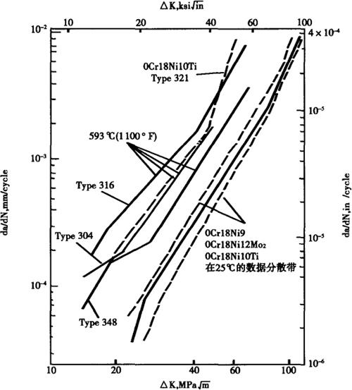 释义 | 0Cr18Ni10Ti(AISI321) (1)钢号简介 在不锈钢工业应用的早期,为解决常规18-8型奥氏体不锈钢的晶间腐蚀问题,发展了用Ti稳定化的奥氏体不锈钢,我国目前此钢的化学成分标号为0Cr18Ni10Ti,在美国称作AISI321。此钢的发展是以奥氏体不锈钢的晶间腐蚀的贫铬理论为基础,通过加入钛,在钢中优先形成TiC,窃取形成Cr23C6的碳,避免大量的网状Cr23C6沿晶界析出,从而减轻晶界贫铬的贫化程度,由于贫铬区铬的含量不低于保证耐蚀性的临界铬量,因此减轻和避免了晶间腐蚀。0Cr18Ni10Ti在冶金装备和工艺水平不能经济生产超低碳奥氏体不锈钢的年代,确实起到了举足轻重的作用,随着二次精炼工艺引入不锈钢以来,超低碳不锈钢的生产已变得容易且成本可被接受的情况下,Ti稳定化不锈钢的地位已渐渐动摇,至20世纪90年代中,西方发达国家的0Cr18Ni10Ti的产量已不足不锈钢产量的1%。由于0Cr18Ni10Ti的常期使用经验、良好的高温力学性能等,目前,在高温和在一些特定环境中(抗氢腐蚀)以及在需要稳定化热处理的条件下仍在使用。在大型锅炉过热器、再热器、蒸汽管道、石油化工的热交换器和连多硫酸的生产设备中仍然得到广泛应用。 (2)化学成分 0Cr18Ni10Ti钢的化学成分见表1-99。 表1-99 0Cr18Ni10Ti钢的化学成分 (3)室温力学性能 室温拉伸性能 不同标准所规定的0Cr18Ni10Ti的室温力学性能见表1-100。实际测定数据见表1-101。 表1-100 标准规定的室温力学性能指标 表1-101 0Cr18Ni10Ti的室温力学性能 (4)冷作硬化特性 冷加工对0Cr18Ni10Ti的室温力学性能的影响见表1-102和图1-121。钢的导磁率和冷加工的关系见表1-103。 表1-102 冷加工对0Cr18Ni10Ti的室温力学性能 图1-121 冷加工变形量对0Cr18Ni10Ti室温力学性能的影响 表1-103 冷变形对0Cr18Ni10Ti导磁率的影响 (5)低温力学性能 0Cr18Ni10Ti的低温力学性能见表1-104和图1-122、图1-123。 表1-104 0Cr18Ni10Ti的低温力学性能 图1-122 退火态0Cr18Ni10Ti低温力学性能 图1-123 0Cr18Ni10Ti低温冲击性能 (6)疲劳性能和断裂韧性 0Cr18Ni10Ti钢的疲劳性能见图1-124。0Cr18Ni10Ti在450~550℃使用51000h后的断裂韧性结果见表1-105,在室温对Jc影响较大,时效使Jc降低35%,dj/da没有明显变化;在高温,时效使Jc降低5%~15%,dj/da减少25%~30%。 图1-124 退火的0Cr18Ni10Ti在室温和593℃空气中的疲劳裂纹扩展速率(L-T曲向,0.17Hz,R=0,单面缺口悬臂梁试样) 表1-105 0Cr18Ni10Ti在450~550℃使用(时效)51000h的断裂韧性 (7)高温瞬时拉伸和持久蠕变性能 不同状态的0Cr18Ni10Ti的高温瞬时力学性能见表1-106至表1-109。 表1-106 固溶态0Cr18Ni10Ti的高温瞬时力学性能 注:①4D试样。 表1-107 经退火后冷加工至96HRB的0Cr18Ni10Ti的高温瞬时力学性能 注:①4D试样。 表1-108 退火后在试验温度时效105h后的高温瞬时力学性能 注:①4D试样。 表1-109 0Cr18Ni10Ti在应力条件下热时效的高温瞬时力学性能(Φ25mm棒,1038℃退火) 注:①4D试样。 0Cr18Ni10Ti钢高温长时性能见图1-125至图1-129和表1-110。 图1-125 0Cr18Ni10Ti钢持久强度和蠕变强度 图1-126 0Cr18Ni10Ti钢管持久强度曲线;断裂应力与时间的关系 图1-127 0Cr18Ni10Ti钢管持久强度曲线断裂应力与温度的关系 图1-128 0Cr18Ni10Ti薄板(1.3mm厚)在649℃和816℃的持久和蠕变强度 图1-129 退火态0Cr18Ni10Ti薄板的持久强度与温度的关系 表1-110 0Cr18Ni10Ti的持久和蠕变性能数据 ①外推数据。 (8)耐蚀性 a.均匀腐蚀 钢的耐均匀腐蚀性能较1Cr18Ni9Ti为优,腐蚀数据可参照1Cr18Ni9Ti,见表1-111。 表1-111 1Cr18Ni9Ti钢的耐腐蚀性能 在硝酸生产中的试验结果为:硝酸氧化吸收塔挂片,40℃,1994h,0.01mm/a;硝酸第一、四、五吸收塔挂片,28~40℃,6290h,≤0.01mm/a;硝酸中和器挂片,120℃,6290h,0.3700mm/a。 00Cr18Ni10Ti在高温高压水中的均匀腐蚀和金属释放速率数据见图1-112至图1-115。 b.点腐蚀 0Cr18Ni10Ti的耐点蚀性能和点蚀电位分别见表1-82和图1-209。 c.应力腐蚀 0Cr18Ni10Ti在42%沸腾MgCl2的应力腐蚀行为见表1-172。在各种介质中的应力腐蚀试验结果见表1-112、图1-130。为了比较列入了0Cr18Ni9和00Cr18Ni10钢的数据。 表1-112 0Cr18Ni10Ti钢在各种介质中的应力腐蚀试样结果(U形试样) 注:●破裂;〇未破裂,数字为试验时间。 固溶——1050℃×5min;敏化——固溶处理后650℃×2h,空冷。 图1-130 0Cr18Ni10Ti钢板SERT曲线 (9)抗辐照性能 0Cr18Ni10Ti的抗辐照性能见图1-82,当Ti量大于0.3%时,其辐照后总应变有明显降低趋势。经辐照后的力学性能变化见表1-113。 表1-113 中子辐照对一些奥氏体钢室温拉伸性能的影响 注:①中子密度。 ②a:未辐照;b:辐照后;c:变化百分数。 (10)工艺性能 钢的冷、热加工性能优良,适宜的热加工温度为900~1150℃,冷加工性能良好,可承受任何形式的冷加工和冷成型。生产板、管、丝、带、管、棒锻件等冶金产品不会出现特殊困难。 钢的热处理工艺通常采用固溶退火,固溶温度为950~1150℃,冷却方式以水冷为宜,薄截面产品可以空冷,冷加工中间退火温度为850~970℃,保温后快冷。此钢亦可采用稳定化处理,热处理温度为850~930℃。 钢的可焊性良好,可采用通常的焊接方法进行焊接。手工电弧焊焊条可使用奥132、奥137、奥022或E347-15(美国牌号)。焊后一般不需要热处理,锅炉钢管焊后要求进行1121℃±28℃,至少保温15分钟的固溶退火处理。 (11)物理性能 钢的物理性能列入表1-114。 表1-114 0Cr18Ni10Ti的物理性能 (12)应用 0Cr18Ni10Ti广泛应用于化工和石油化工以及核工业的耐腐蚀部件和高温焊接构件。如反应器、管道、热