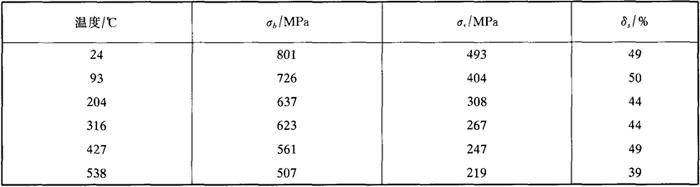 释义 | 0Cr18Ni3Mn13N(Nitronic33) (1)简介0Cr18Ni3Mn13N是一种低镍奥氏体不锈钢,具有高的屈服强度(大约是304的2倍)、好的耐应力腐蚀性能、低的磁导率和良好的低温性能。它的耐磨蚀性能比一般奥氏体不锈钢好得多,能够通过制造一般奥氏体不锈钢的方法生产,焊接前后不用热处理。0Cr18Ni3Mn13N有以下特点:①高的屈服强度,②较好的耐应力腐蚀性能,③在大变形冷加工条件下,依然保持很低的磁导率,④良好的强度和塑性的匹配,⑤优良的耐磨损性能。几乎所有的性能都超过304不锈钢。 (2)化学成分 见表1-279。 表1-279 0Cr18Ni3Mn13N化学成分表 (3)室温力学性能 见表1-280。 表1-280 0Cr18Ni3Mn13N室温力学性能 (4)冷硬化特性 见表1-281。 表1-281 冷作硬化特性 (5)低温力学性能见表1-282、表1-283。 表1-282 低温力学性能(一) 表1-283 低温力学性能(二) (6)瞬时高温力学性能 见表1-284。 表1-284 瞬时高温力学性能 (7)持久强度 见表1-285。 表1-285 持久强度 注:①通过外推得到的数据。 (8)耐腐蚀性能 0Cr18Ni3Mn13N在大多数的气氛条件下都是耐蚀的,在49℃的饱和空气中和在35℃的5%NaCl盐雾试验中经历240h没有任何腐蚀迹象。在低应力下,0Cr18Ni3Mn13N比304有更好的耐应力腐蚀性能,在高应力下,两者差不多。0Cr18Ni3Mn13N的焊接接头不用热处理就能通过65%硝酸和硫酸-硫酸铜晶间腐蚀试验。0Cr18Ni3Mn13N在连多硫酸中有优异的耐应力腐蚀的能力,不论是固溶态还是敏化态,在室温连多硫酸溶液中,经500h试验,无应力腐蚀破裂。 0Cr18Ni3Mn13N具有优异的耐磨损性能,远优于普通奥氏体不锈钢,见表1-285。 表1-286 耐磨损性能 (9)工艺性能 与其他奥氏体不锈钢一样,可用通过常见的加工方法加工此钢,由于此钢与300系列相比,强度稍高,因此需要较高的轧制力。加工过后一般要求固溶处理。 a.焊接性能 0Cr18Ni3Mn13N的板带材焊接时不需要填丝,焊接接头处的强度和基体强度等同。0Cr18Ni3Mn13NW有与0Cr18Ni3Mn13N相匹配的强度、磁导率和耐腐蚀性,是最适合的焊接填料。如果要求不特别严格的话,308L和312也可以选用。焊接方法可以用:①气体保护焊;②钨极气体保护焊;③埋弧焊。 b.热处理 固溶:1038~1093℃,快速冷却。 (10)物理性能 密度(g/cm3):7.8 电阻率(nΩ·m):700 热导率(W/m·K):16.3(20~100℃) 表1-287 热膨胀系数(10-6/k) 表1-288 磁导率 (11)应用 热交换器,压力容器,低温容器,旋转设备等。 产品形式:板材,带材,棒材,线材,管材等。 |