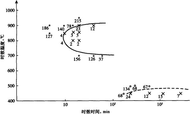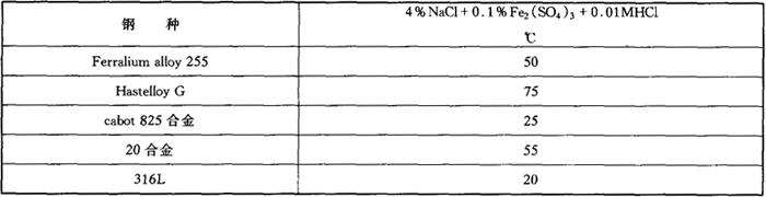 释义 | 0Cr25Ni6Mo3CuN 0Cr25Ni6Mo3CuN钢是英国Bonar-Langley Alloys Limited公司的产品,牌号是FERRALIUM alloy 255(255合金),UNS的牌号是S32550。此钢种发展于20世纪70年代,是第二代双相不锈钢的代表钢种之一,由于所具有的性能特色,应用范围很宽,至今仍是大量使用的一个牌号。该钢已纳入ASTM,ASME的标准:A240(SA240),A479(SA479),A789(SA789),A790(SA790)。 中国也发展了这一钢种,研究了成分范围,尤其是关键元素铜的控制,铜加入钢中对于较低pH的环境(如酸性油井,污染的海水等),特别在高流速下产生的磨损腐蚀和空泡腐蚀是有利的。 0Cr25Ni6Mo3CuN钢具有较好的力学与耐蚀的综合性能,与300系奥氏体不锈钢相比,他具有高强度,好的塑性与成型性,有优秀的耐局部腐蚀性能,如在海水介质中有很好的耐点蚀、缝隙腐蚀、空泡和磨损腐蚀及高的疲劳强度,在许多环境中耐均匀腐蚀性能也较好,是一个在多种介质中适用性很强,应用范围很宽的一个钢种。 (1)化学成分和钢的组织稳定性 a.化学成分 0Cr25Ni6Mo3CuN双相不锈钢的化学成分见表4-65。 表4-65 0Cr25Ni6Mo3CuN钢的化学成分(%) 注:①表中为变形材的化学成分。 ②UNS S32550(Ferralium alloy 255)的成分是根据ASTMA 240-99a标准。 Ferralium alloy 255最早用于铸钢,后经调整了成分已大量用于变形材,关键是加氮和控制铜元素,目前铸钢的铜一般控制在不大于3.0%,对变形材则控制在不大于2.0%。 b.钢的组织稳定性 0Cr25Ni6Mo3CuN钢的两相比例随加热温度的升高,γ相减少,但至1200℃时仍保留有37%的γ相。 0Cr25Ni6Mo3CuN钢的σ相等温转变曲线见图4-55。 图4-55 0Cr25Ni6Mo3CuN钢的σ相等温转变曲线 (2)力学性能 0Cr25Ni6Mo3CuN钢经1050水冷(固溶态)和固溶+500℃时效处理后的室温力学性能见表4-66,高温力学性能见表4-67。 表4-66 0Cr25Ni6Mo3CuN钢的室温力学性能 表4-67 0Cr25Ni6Mo3CuN钢的高温力学性能 钢在不同时效温度区间的组织转变如σ相、α′相的出现对钢的力学性能有一定的影响,尤其是σ相的影响更为显着。相对组织转变的两个区域出现了钢的两个脆性区,表现为AK值降低和硬度值增高,见图4-56,4-57。 图4-56 时效温度和时间对AK值的影响 图4-57 钢经不同温度时效后硬度的变化 为了避免“475℃脆性”,0Cr25Ni6Mo3CuN钢按ASME压力容器标准的要求,长时间的使用温度不允许超过250℃。 (3)耐腐蚀性能 a.点蚀 0Cr25Ni6Mo3CuN双相不锈钢与其他钢的耐点蚀当量值对比见表4-68,说明在含氯环境中0Cr25Ni6Mo3CuN钢的耐点蚀性能优于18-5Mo型双相不锈钢,更优于316L奥氏体不锈钢。 表4-68 几种钢的耐点蚀当量值对比 在3%NaCl+5%H2SO4,35℃溶液中几种钢的点蚀电位列于表4-69。 表4-69 几种钢的点蚀电位(mV) 在FeCl3溶液中的腐蚀速率列于表4-70。 表4-70 几种钢在FeCl3溶液中的点蚀率(g/m2·h) 几种钢的临界孔蚀温度(CPT)的测定值见表4-71。 表4-71 在4%NaCl+0.1%Fe2(SO4)3+0.01MHCl溶液中几种材料的CPT值 注:Hastellyo G-Ni-22Cr-19.5Fe-6.5Mo-2Cu;cabot825合金-Ni-21.5Cr-27Fe-3Mo-2Cu;20合金-Fe22Cr-26Ni-5Mo-2Cu。 b.缝隙腐蚀,电偶腐蚀 采用多面缝隙组合试样在北卡路里那的天然海水(25℃)中经30d的浸泡试验的结果列于表4-72。 表4-72 0Cr25Ni6Mo3CuN钢的缝隙腐蚀试验结果 Ferralium alloy 255与其他金属组成的电偶对在天然流动海水中进行了1006h的浸泡试验,电偶对和标样的腐蚀数据分别列于表4-73、图4-74。 表4-73 在流动海水(2.4m/s,26.5℃)中几种电偶对的腐蚀评价 表4-74 在流动海水(2.4m/s,26.5℃)中标样的浸泡试验 从以上可以看出Ferralium alloy 255的标样电偶对以及与其他金属组成的电偶对,失重或腐蚀速率都很低,其他金属都遭受不同程度的电偶腐蚀,即使是monel合金(Ni-Cu合金)与Ferralium alloy 255组对后,monel合金的腐蚀速率也是标样的4倍。 c.应力腐蚀 在25% NaCl+1%K2Cr2O2沸腾(108℃),pH=6的溶液中,0Cr25Ni6Mo3CuN钢的应力腐蚀试验结果见表4-75。 表4-75 几种钢的应力腐蚀试验结果(恒变形U形弯曲试样) 注:试验介质25%NaCl+1%K2Cr2O7沸腾(108℃)。 d.晶间腐蚀 0Cr25Ni6Mo3CuN钢的Huey法晶间腐蚀试验结果见表4-76,钢时效态的腐蚀量与316L(尿素级)相当。 表4-76 0Cr25Ni6Mo3CuN钢与316L(尿素级)钢Huey法(65%HNO3,沸腾)晶间腐蚀试验结果 e.均匀腐蚀 Ferralium alloy 255在不同溶液中与其他钢种腐蚀速率的对比见表D4-77。 表4-77 几种钢在不同溶液中的腐蚀速率对比(mm/a) Ferralium alloy 255及其他钢种在H2SO4的等腐蚀速率图(0.5mm/a)见图4-58。 图4-58 Ferralium alloy 255在H2SO4中的等腐蚀速率图 f.磨损腐蚀 采用动态模拟实验装置——带挡板的旋转圆盘,研究了0Cr25Ni6Mo3CuN钢在3.5%NaCl溶液(55℃)中的磨损腐蚀规律,不同流速对钢的固溶态和时效态的腐蚀速率影响见图4-59。 图4-59 0Cr25Ni6Mo3CuN钢的腐蚀速率与流速的关系 ●-1050℃;◆1050℃+500℃,2h时效;△1050℃+500℃,50h时效 0Cr25Ni6Mo3CuN钢的腐蚀速率随流速的增加而增大,并存在一个使腐蚀速率急剧增大的临界流速值(V=10m/s左右),高于临界流速时,试样表面除孔蚀以外,均匀腐蚀严重。 (4)物理性能 见表4-84至表4-88。 (5)焊接性能 0Cr25Ni6Mo3CuN钢可采用GTAW、SMAW和GMAW等方法焊接,也可以与其他双相不锈钢或异种钢,如316、碳钢等进行焊接,焊接工艺与焊接奥氏体不锈钢相似,但是为了-提高焊缝金属的耐腐蚀性,一般采用更大一些的线能量,通常焊后不需热处理。 当采用SMAW法焊接时,需采用含镍量高于母材的焊芯(Ni约70%),以提高焊缝的奥氏体数量,使焊缝金属具有与母材相等的塑性。 (6)冷、热加工性能 0Cr25Ni6Mo3CuN钢可以进行剪切、冲