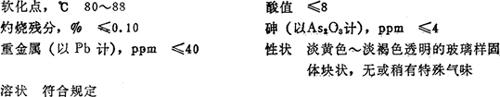 性能 淡黄色至淡褐色易碎透明玻璃状块状物,无臭,或微有特殊臭气。不溶于水,溶于苯、甲苯、石油、松节油、亚麻仁油等,略溶于乙醇。相对密度约1.08。空气中易氧化,粉末有自燃性,可自燃爆炸。