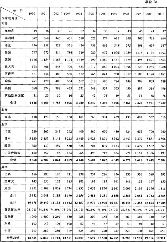1990~2001年世界各国不锈钢产量