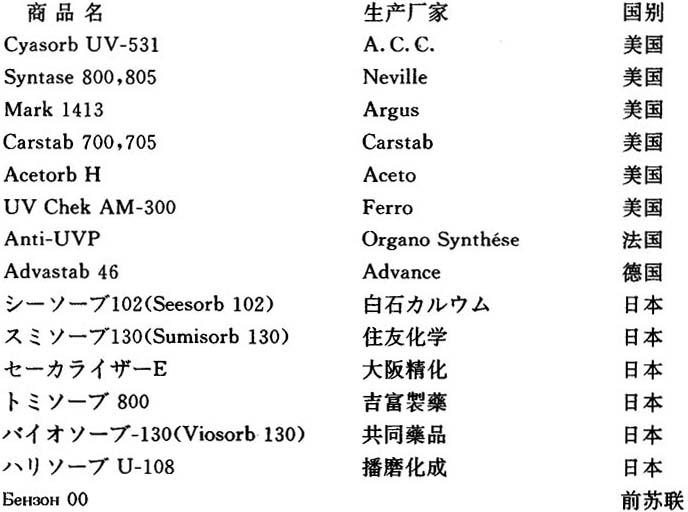 释义 | 2-羟基-4-正辛氧基二苯甲酮 【结构式】: 【释文】: 制法 由2,4-二羟基二苯甲酮与溴辛烷缩合而成。 性质 浅黄色或白色结晶粉末。分子量326。相对密度1.160(25℃)。熔点48~49℃。溶于丙酮、苯、乙醇、异丙醇,微溶于二氯乙烷,不溶于水。表3-12为本品在部分溶剂中的溶解度。 表3-12 2-羟基4-正辛氧基二苯甲酮的溶解度(g/100g溶剂,25℃) 用途 本品为紫外线吸收剂,能够强烈地吸收波长为270~330nm的紫外线,可用于各种塑料,特别是聚乙烯、聚丙烯、聚苯乙烯、ABS树脂聚碳酸酯、聚氯乙烯、聚偏二氯乙烯、环氧树脂、聚酯和纤维素树脂等。与树脂的相容性好,挥发性小。一般用量为0.1~1%,与少量4,4′-硫代双(6-叔丁基对甲酚)并用有良好的协同效应。本品还可用作各种涂料的光稳定剂。 毒性 本品毒性小,对大白鼠的经口LD50为12g/kg体重,小白鼠经口LD50为10.985mg/kg体重。以每日1.90g/kg体重的剂量对大白鼠连续染毒90天,实验动物发育减慢,血相变化,肾脏受害,但用每日0.60g/kg体重的剂量染毒时,则无这些致毒作用。 许多国家许可本品用于接触食品的塑料制品,如美国(用于聚烯烃,参见FDA121.2566)、英国(最高用量0.6%)、荷兰(最高用量0.5%)、意大利(对聚乙烯、聚丙烯的最高用量为0.5%)和日本,日本的用量限制是:聚乙烯0.5%、聚丙烯1%、AS树脂和ABS树脂0.5%、聚氯乙烯0.5%(不可接触油脂性食品或乙醇含量超过20%的食品)。 国内生产厂 北京化工三厂 武汉化学助剂总厂 南京长征化工厂 江苏镇江塑料三厂 镇江市聚氯乙烯树脂厂 国外生产厂 |